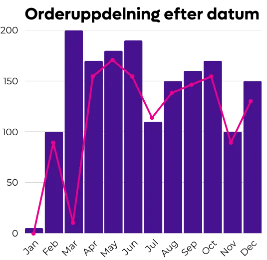 Upptäck trender i försäljningen, identifiera dina mest lönsamma produkter och platser, och optimera prissättningen. Få detaljerad insyn i ordervolym, intäkter och genomsnittligt ordervärde per stad, verksamhet och produktkategori.