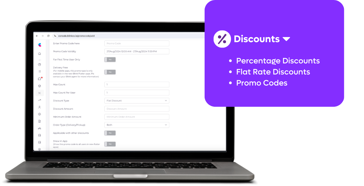 Blinks plattform för onlinebeställningar innehåller en kraftfull rabattmotor. Erbjud procentuella rabatter, fasta priser och personliga kampanjkoder för att locka nya kunder, behålla befintliga och öka både försäljning och kundnöjdhet.