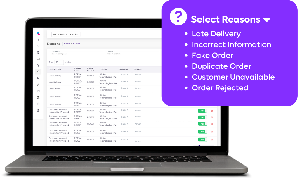 Främja transparens med Blinks Rider App. Förare kan enkelt ange varför de avvisar en leverans – t.ex. punktering, dåligt väder eller annat. Det ger tydlig kommunikation och hjälper till att hålla leveranserna effektiva.