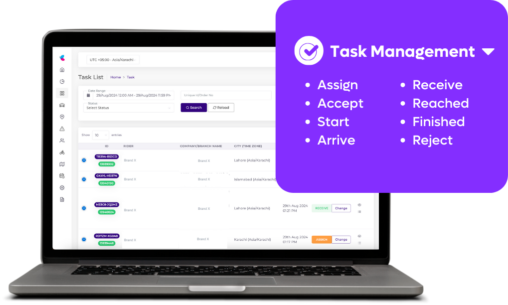 Lägg enkelt till uppgifter – individuellt eller i bulk – till dina förare. Med Blink har du full översikt över alla uppdrag: tilldelade, avvisade eller ej tilldelade. Det ger tydlig kommunikation och effektiv leveransdrift.
